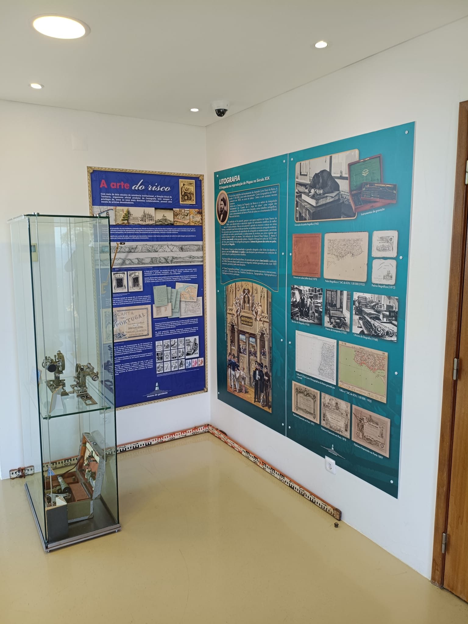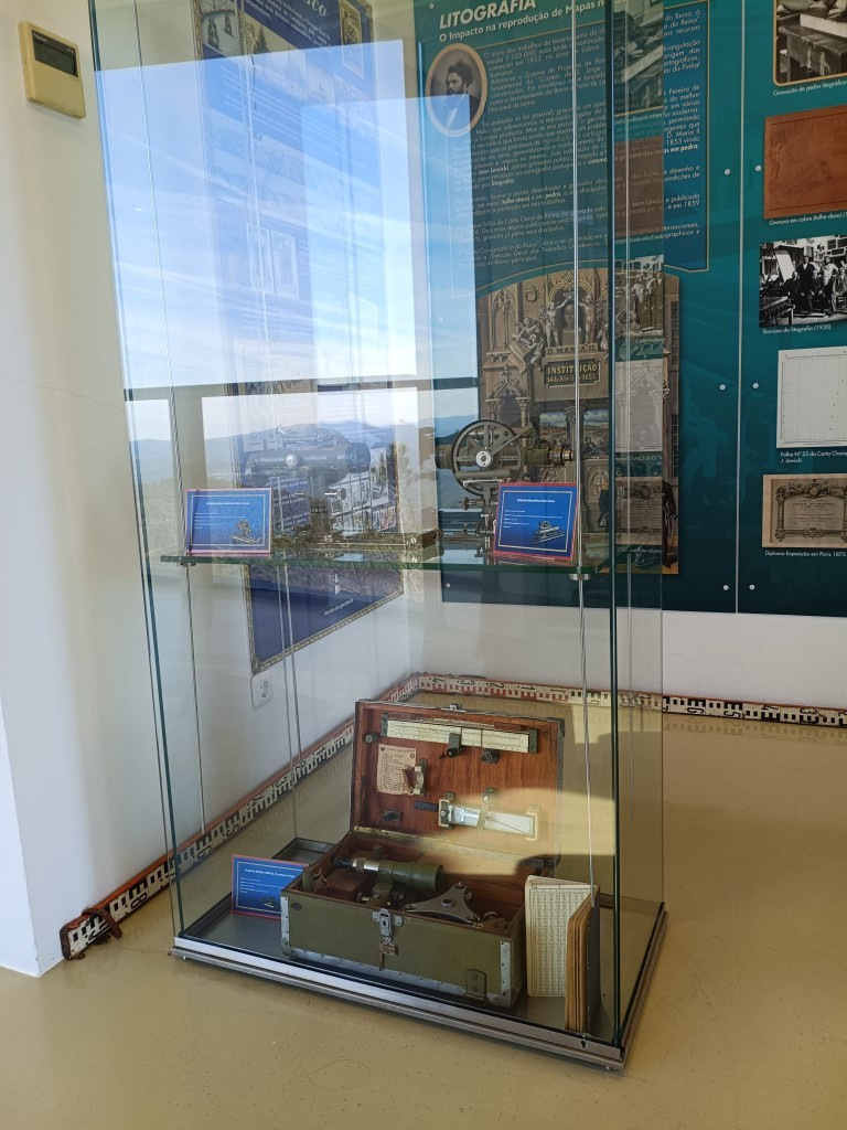 A mostra, elaborada pela Direção-Geral do Território (DGT), passa agora a integrar, para além dos 16 painéis informativos já existentes, diversos instrumentos históricos utilizados em trabalhos geodésicos e cartográficos. Entre os novos elementos expostos encontram-se alidades, alidades holométricas, máquinas de gravação em pedra litográfica, chapas e pedras litográficas, bem como conjuntos de instrumentos de gravação Stabilene.