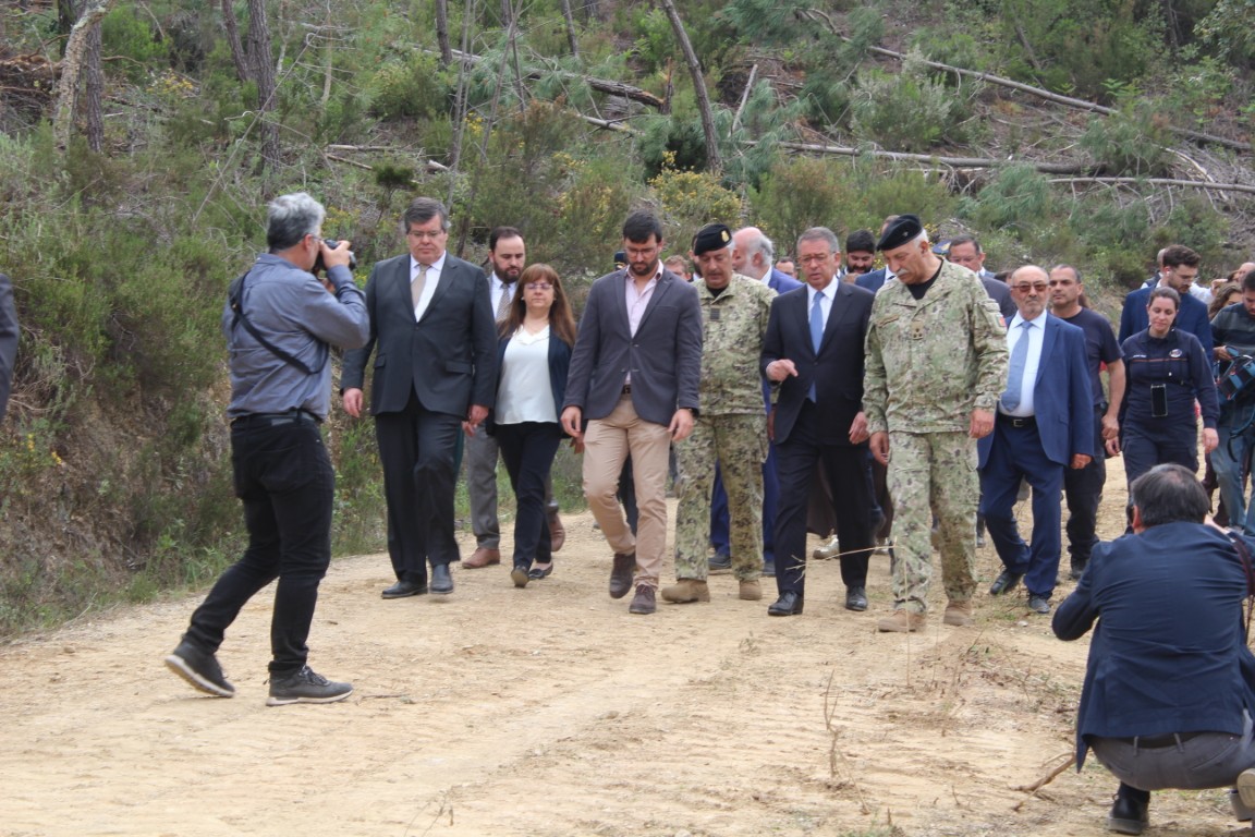 Durante a visita, a comitiva acompanhou no terreno as operações de limpeza e desobstrução de vias florestais, que continuam a decorrer em vários pontos do Concelho, asseguradas por equipas do Exército e pelos Sapadores Florestais de Vila de Rei.