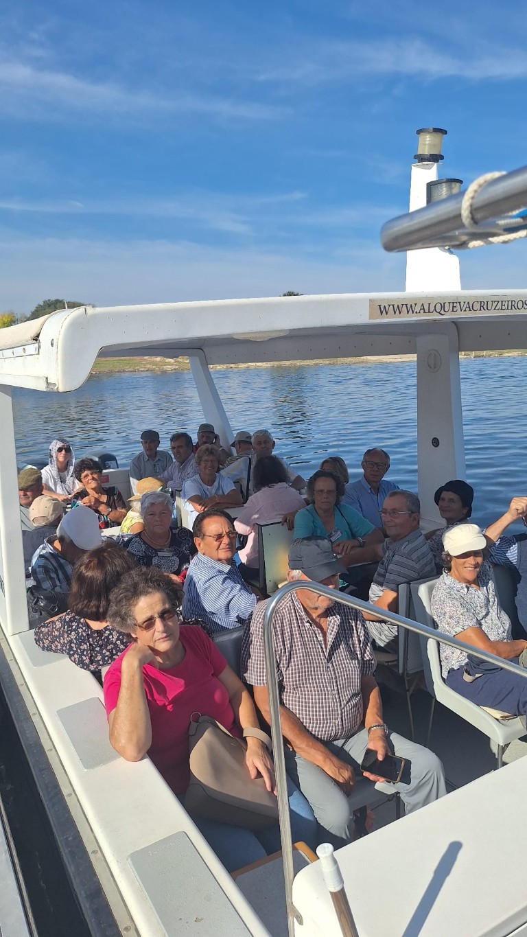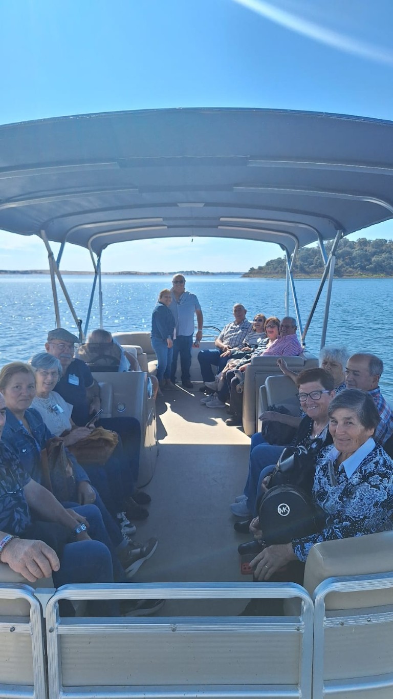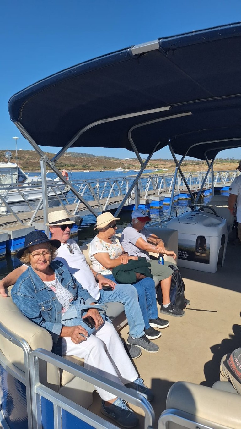 Por fim, no dia 3 de outubro, os idosos participaram num passeio de barco pelo Alqueva, encerrando a semana com uma experiência única em contacto com a natureza. A visita incluiu uma passagem por Monsaraz e pela olaria de Rui Patalim, enriquecendo o dia com cultura e tradição.