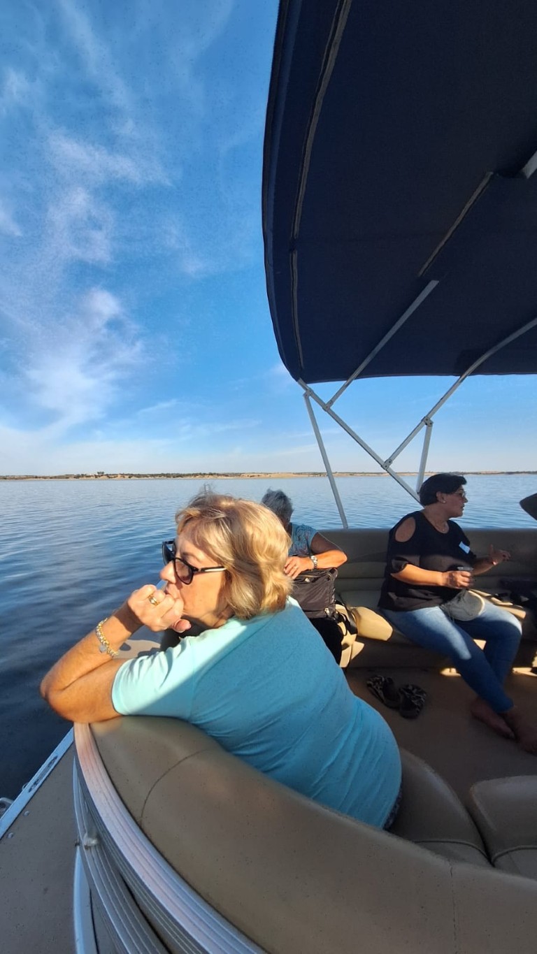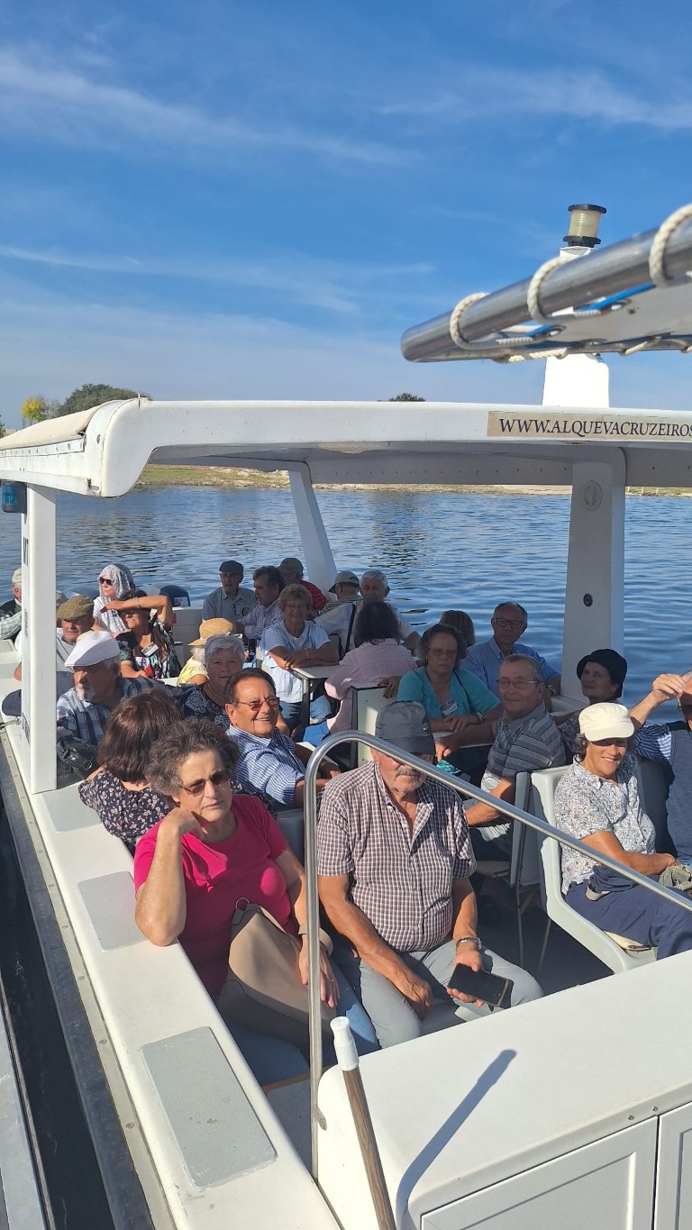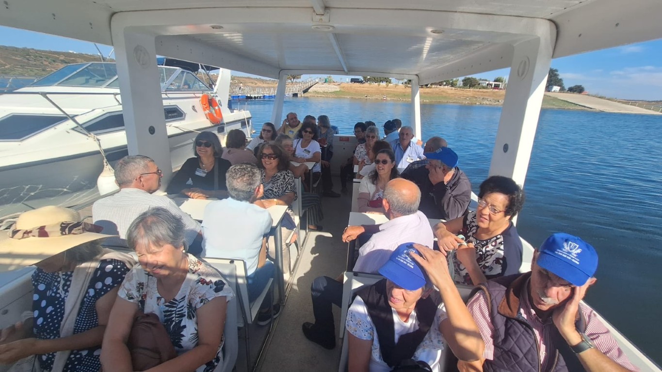 Por fim, no dia 3 de outubro, os idosos participaram num passeio de barco pelo Alqueva, encerrando a semana com uma experiência única em contacto com a natureza. A visita incluiu uma passagem por Monsaraz e pela olaria de Rui Patalim, enriquecendo o dia com cultura e tradição.