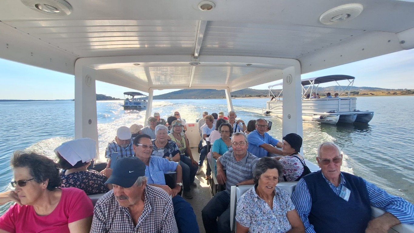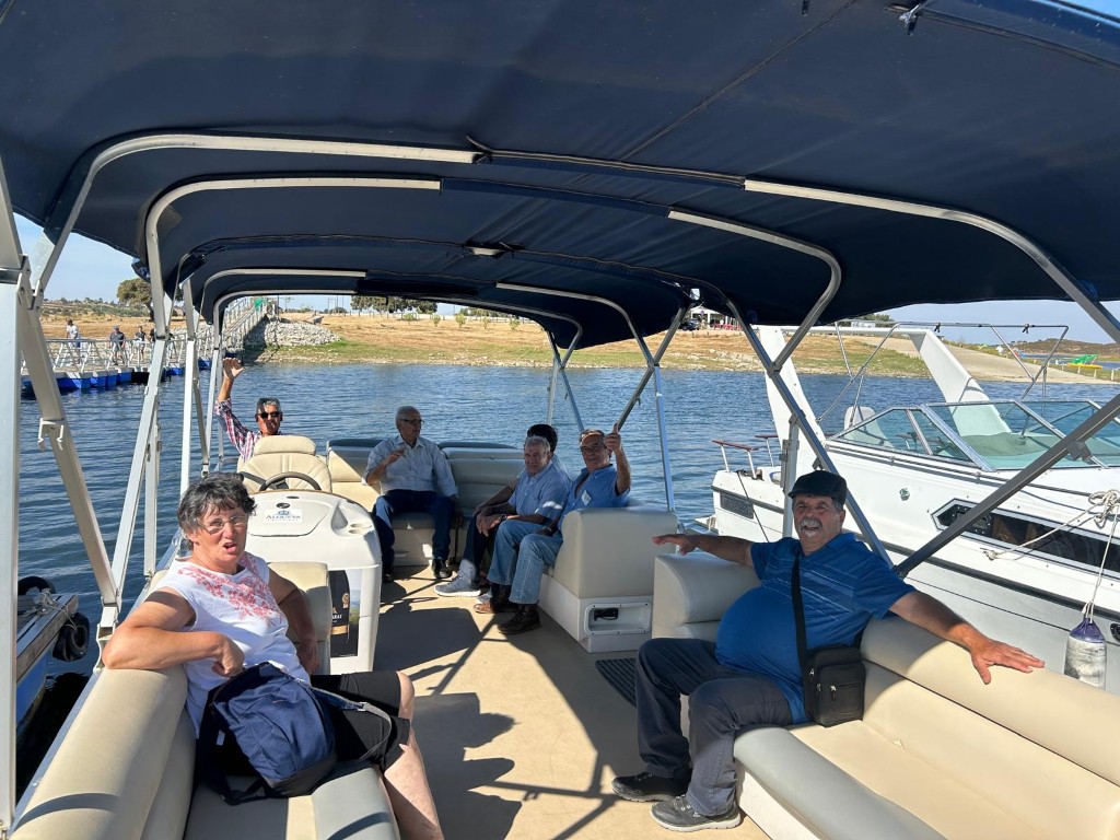 Por fim, no dia 3 de outubro, os idosos participaram num passeio de barco pelo Alqueva, encerrando a semana com uma experiência única em contacto com a natureza. A visita incluiu uma passagem por Monsaraz e pela olaria de Rui Patalim, enriquecendo o dia com cultura e tradição.